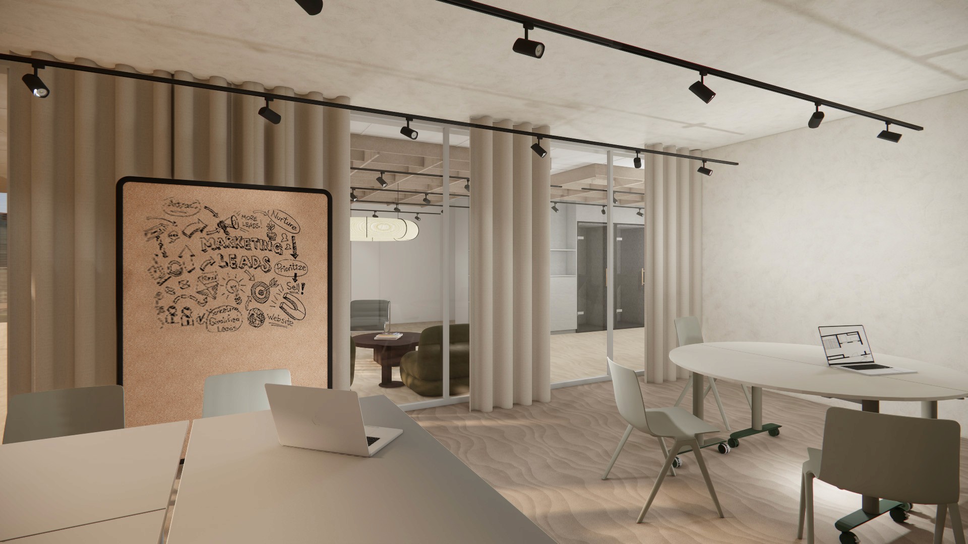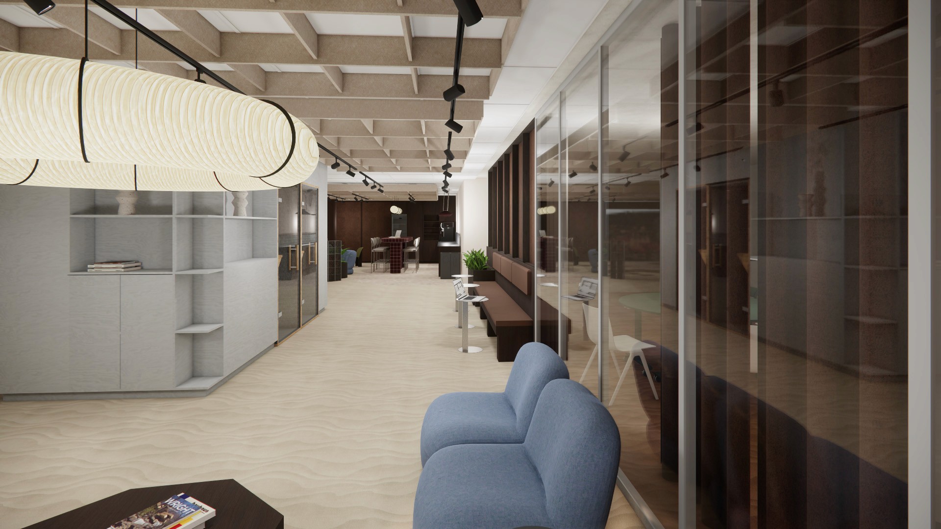 Die Flächen sind in klar definierte Arbeitszonen unterteilt: Work Areas, Collaboration Spaces, Meeting Rooms, Focus Areas sowie großzügige Social Areas. Diese Struktur ermöglicht eine flexible Nutzung für unterschiedliche Arbeitsweisen – von konzentrierter Einzelarbeit über kollaborative Teamprozesse bis hin zu Meetings und informellem Austausch.